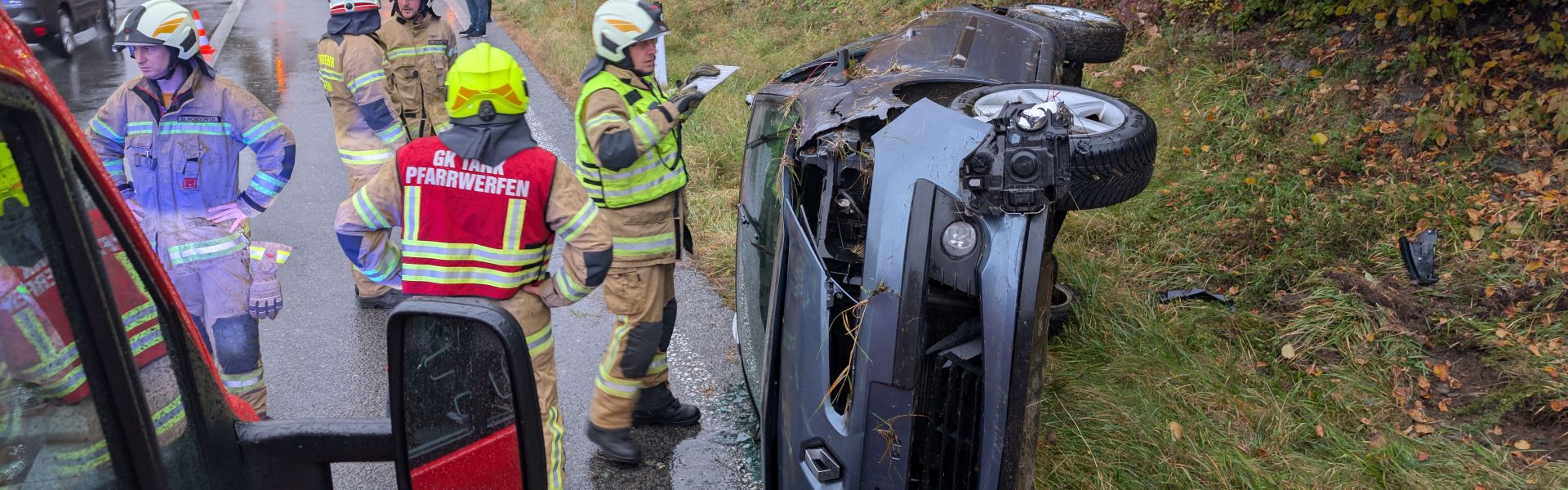 Donnerstag Nachmittag ereignete sich auf der Autobahnabfahrt Bischofshofen, Rampe 3, ein Verkehrsunfall, bei dem drei Personen – zwei Erwachsene und ein Kind – verletzt wurden. Der Lenker hatte in einer Rechtskurve die Kontrolle über seinen Pkw verloren und war in den Straßengraben geraten. Das Fahrzeug hatte sich daraufhin überschlagen und war auf der rechten Fahrzeugseite liegen geblieben.