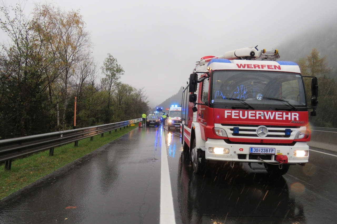 Zweiter Einsatz für die Feuerwehren Pfarrwerfen und Werfen an diesem Freitag: Kurz nach Mittag ereignete sich auf der A10, Fahrtrichtung Villach, kurz nach dem Brentenbergtunnel ein Verkehrsunfall mit zwei beteiligten Pkw. Eine Person wurde dabei leicht verletzt.