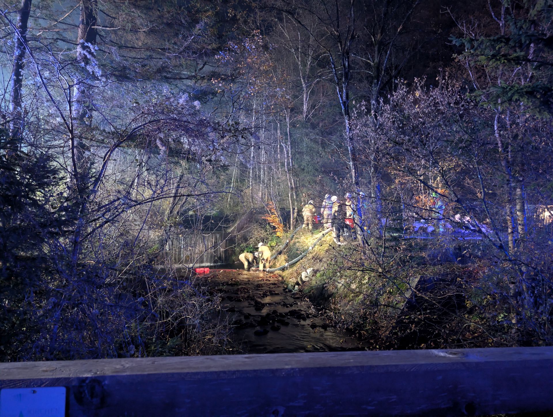 Die Feuerwehren Pfarrwerfen und Werfen standen mit insgesamt 60 Mitgliedern und fünf Fahrzeugen rund zweieinhalb Stunden im Einsatz.