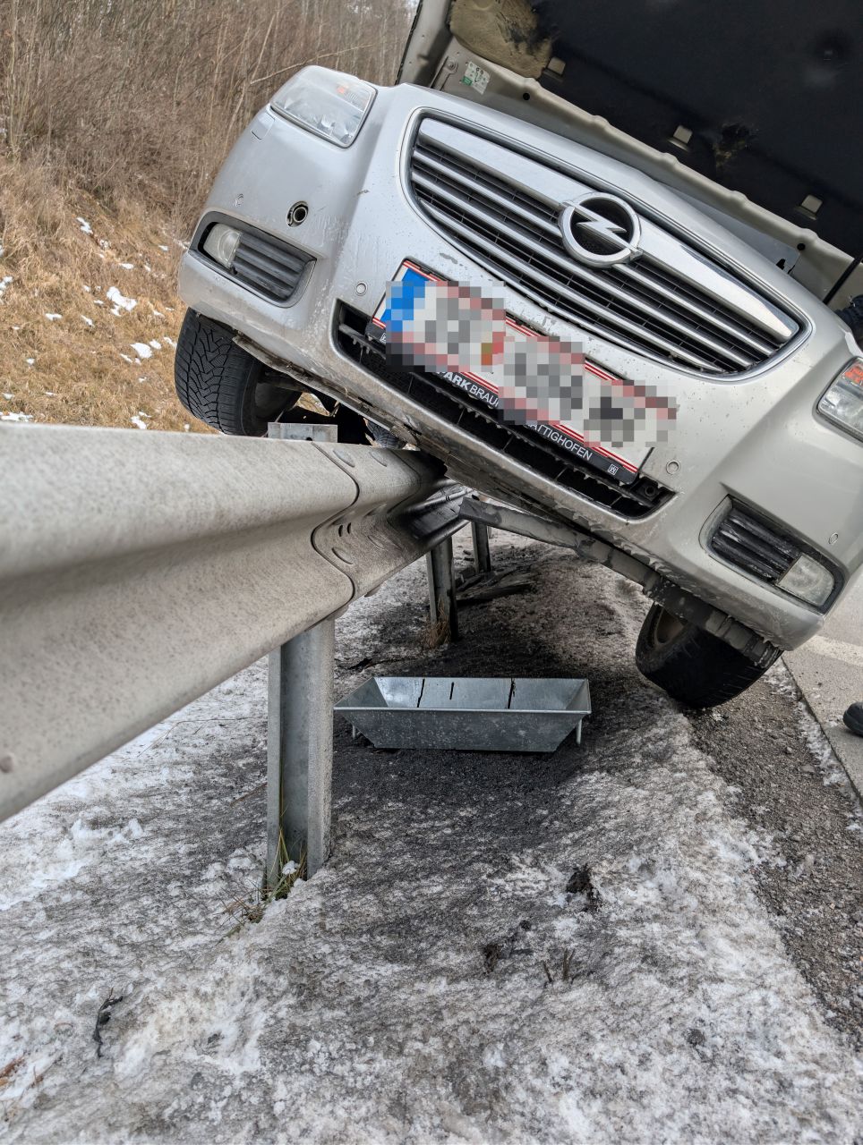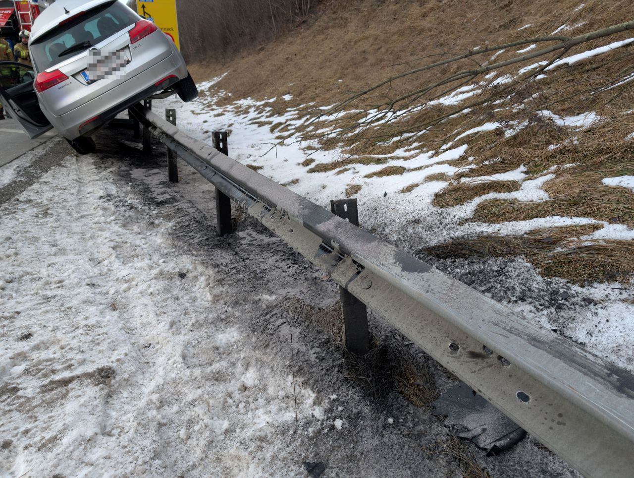 Pkw landet bei Unfall auf Leitschiene: Ölwanne aufgerissen