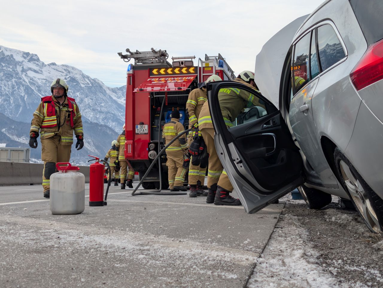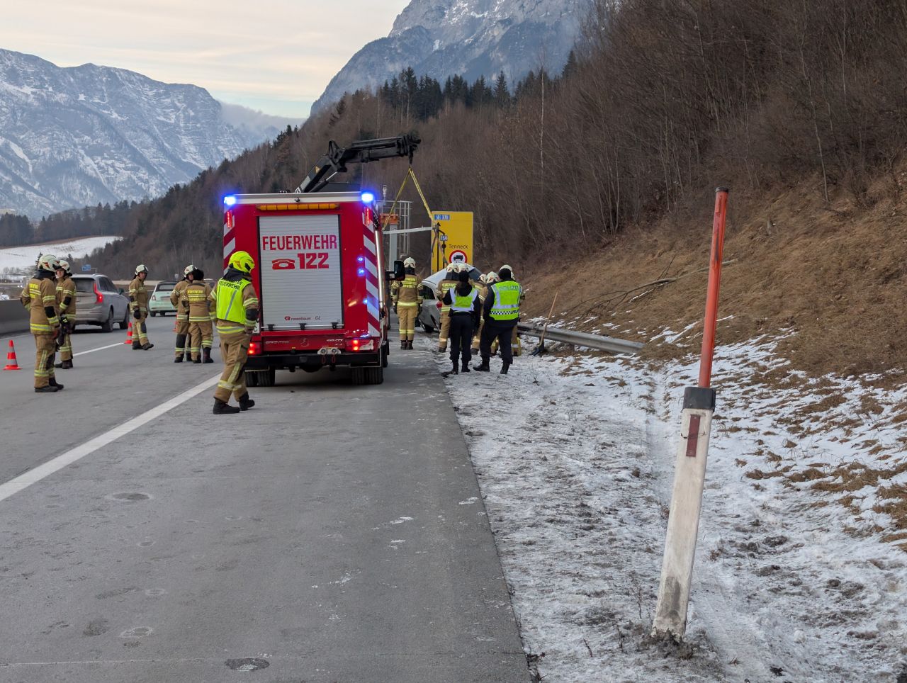 Als die Feuerwehren an der Einsatzstelle eintrafen, wurden die beiden Insassen bereits vom Roten Kreuz versorgt. Sie waren bei dem Unfall unverletzt geblieben. Weiters war eine Zivilstreife der Autobahnpolizei vor Ort.