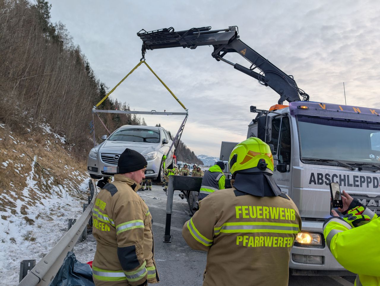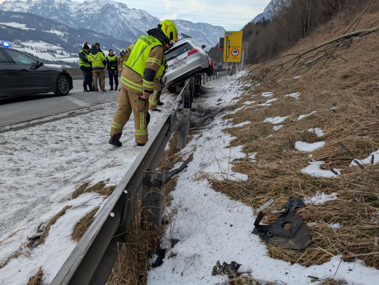Montag Nachmittag um 15:11 Uhr wurden die Feuerwehren Pfarrwerfen und Werfen zu einem Verkehrsunfall auf der A 10 Tauernautobahn, Fahrtrichtung Salzburg alarmiert. Die Lenkerin eines mit zwei Personen besetzten Pkw hatte – vermutlich aufgrund eines technischen Defekts – die Kontrolle über ihr Fahrzeug verloren, war dabei rechts von der Fahrbahn abgekommen und auf die Leitschiene geschlittert. Dabei war die Ölwanne des Motor aufgerissen worden.
