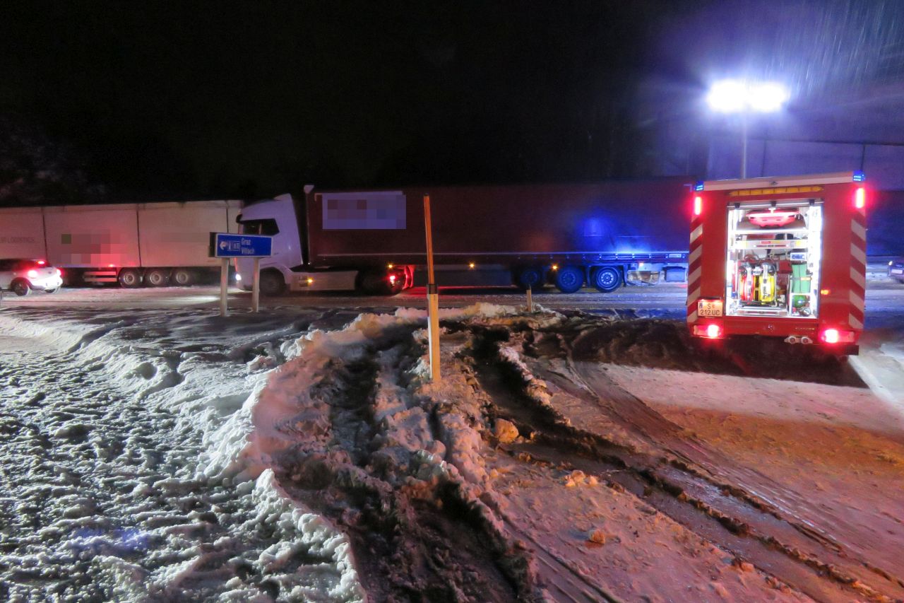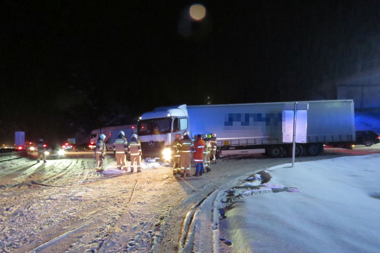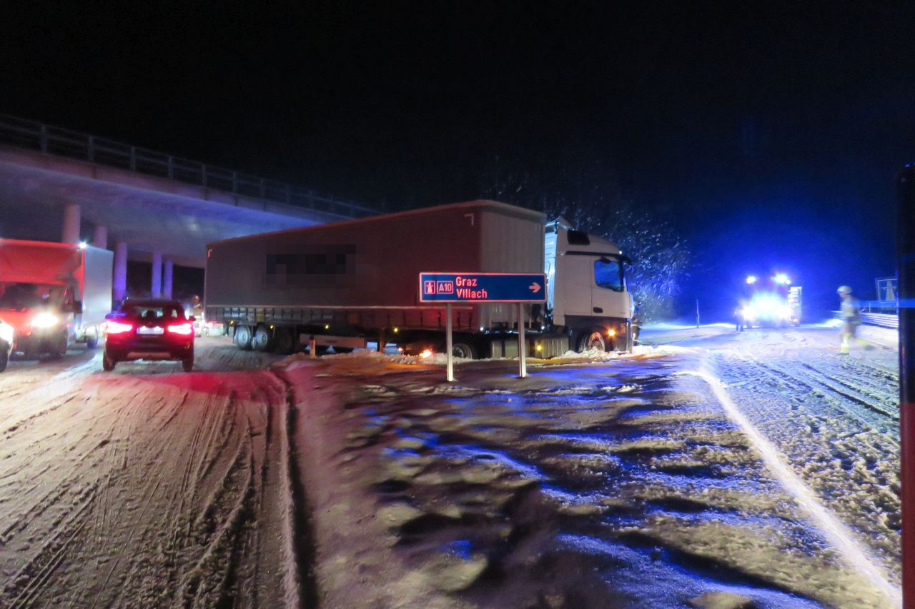 In Pfarrwerfen versuchte ein Lkw-Lenker, der bei der Abfahrt Pfarrwerfen ausgeleitet worden war, in Fahrtrichtung Süden wieder auf die A 10 aufzufahren. Dabei geriet sein Fahrzeug ins Rutschen und blieb im Bankett hängen. Damit war auch die Auffahrt in Richtung Süden blockiert.