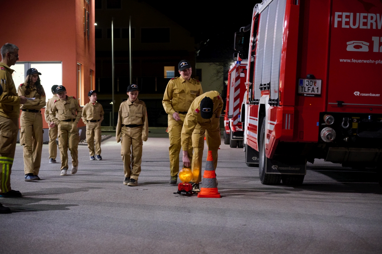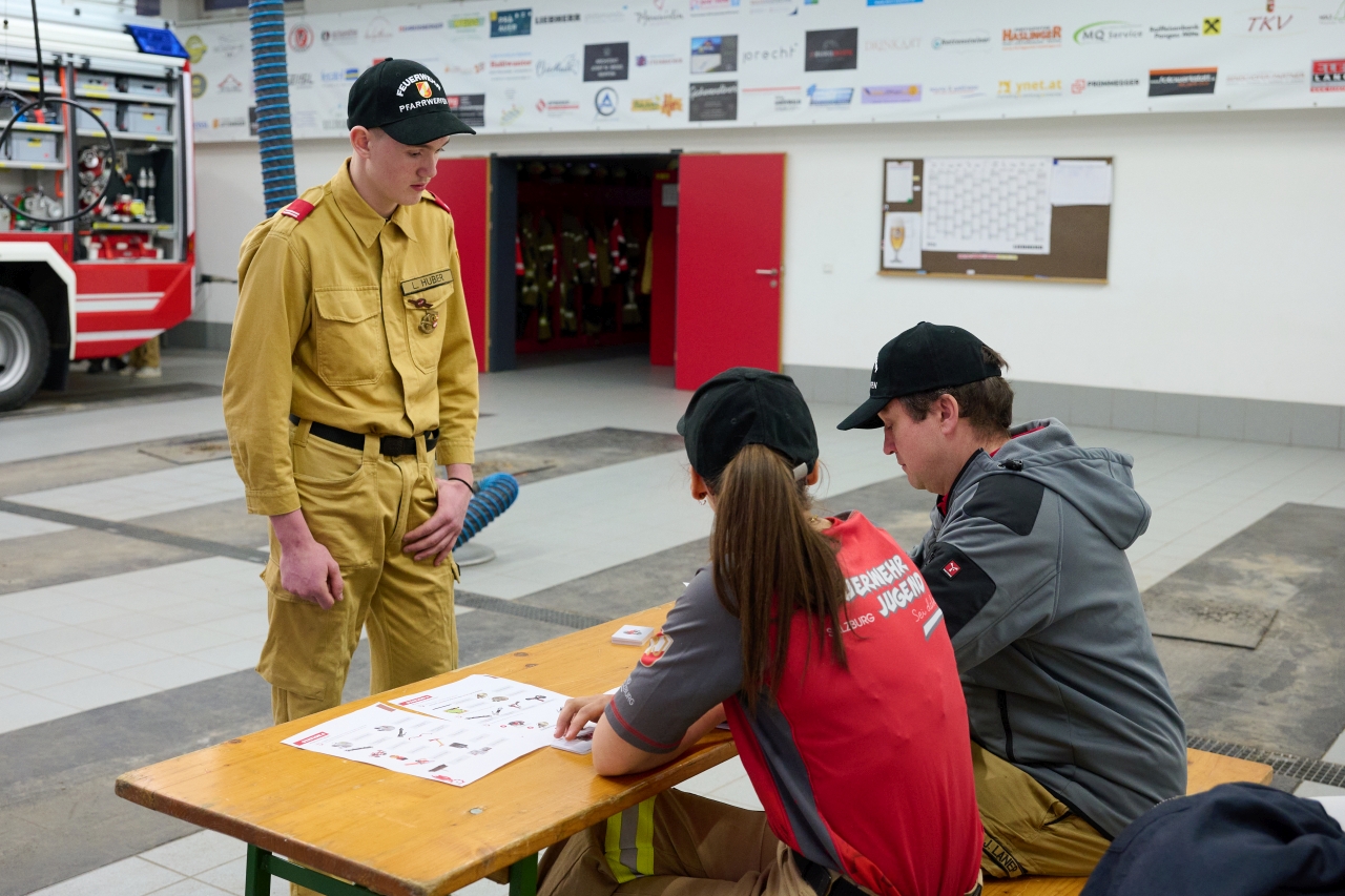 Bei der Erprobung der Feuerwehrjugend müssen die Jugendlichen ihr Wissen bei einer Mischung aus theoretischen und praktischen Prüfungen unter Beweise stellen. Die Themenbereiche sind dabei vielfältig und umfassen zahlreiche Bereiche des Feuerwehralltags, wie Funken, Gerätekunde, Dienstgrade und Erste Hilfe, aber auch das korrekte Absichern einer Unfallstelle und Löschlehre. Sieben Mitglieder der Feuerwehrjugend Pfarrwerfen absolvierten am vergangenen Freitag die Erprobung in den Stufen 1 bis 3.